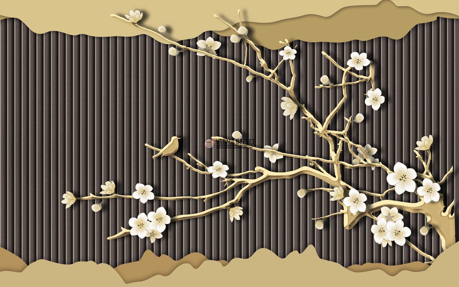 Golden tree with white flower