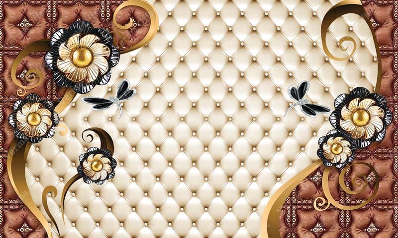 3d Wallpaper with Copper decoration Flower