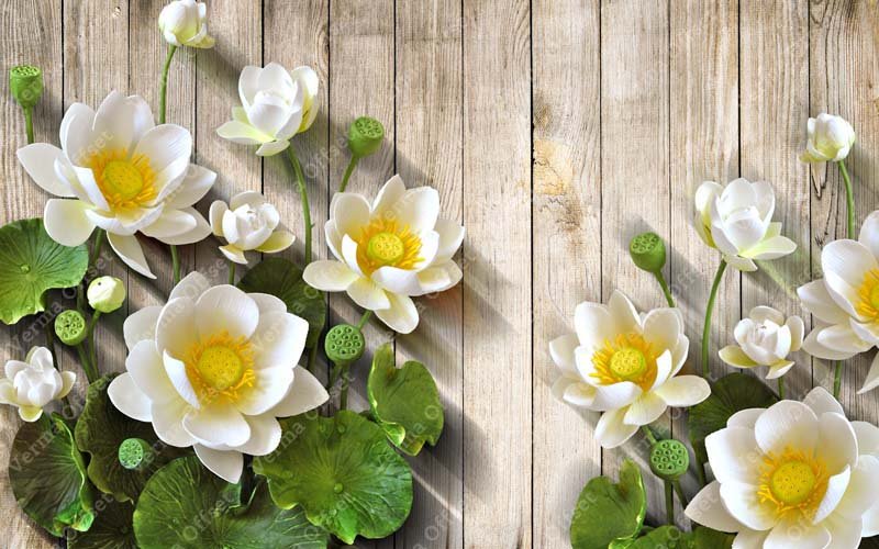 Lotus Flower with leaf on Wood Background