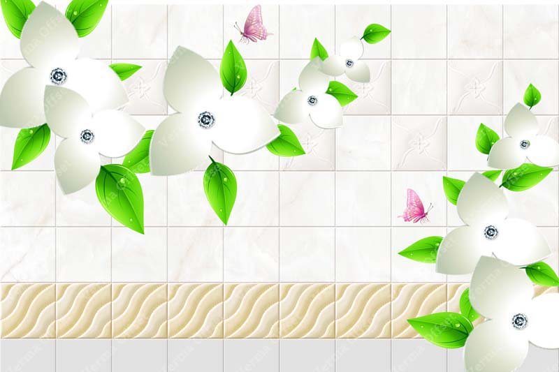 Elegant 3D White Lily & Geometric Bloom Digital Wallpaper