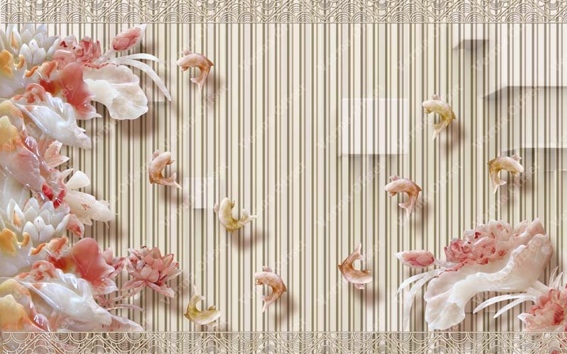 Vintage Peach Floral Mural with Vertical Stripe Pattern