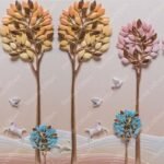 Stylized Autumn Tree Row with Flying Birds 3D Art